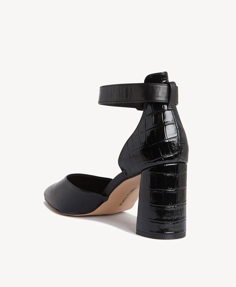 A minimal silhouette allows the Sophie heel’s details to do the talking. Croc embossed leather and a chic ankle strap make this style an elevated look for summer events.