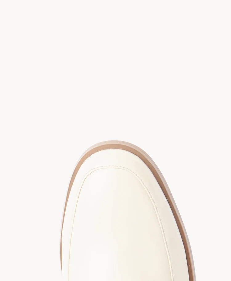 The Thelma loafer embodies soft sophistication with its supple leather and hardware detailing. Her stacked heel ensures that you can dress her down with denim, while her classic silhouette makes her the perfect pairing with relaxed blazers.