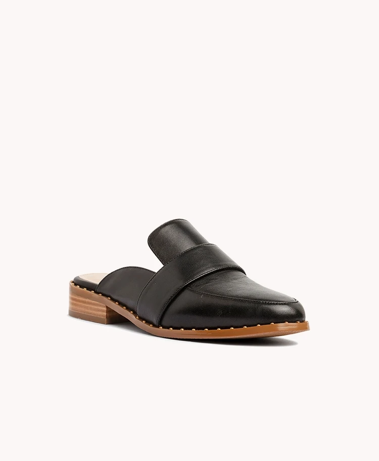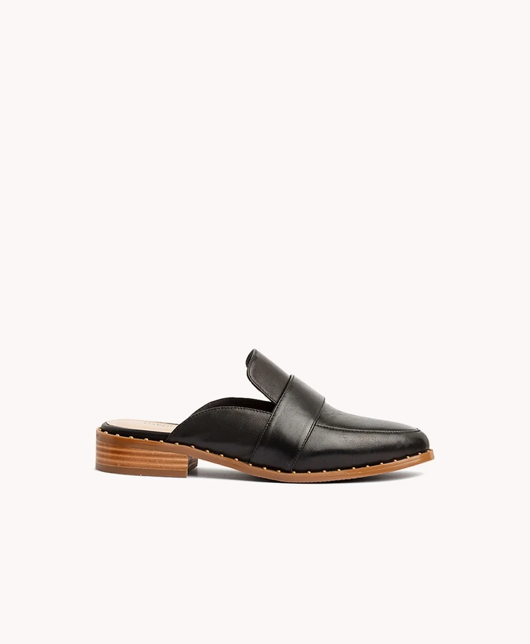 Back-out loafers are the perfect transeasonal shoe. Both classic and modern, these mules feature a glamorous studded rand, ready for any occasion.