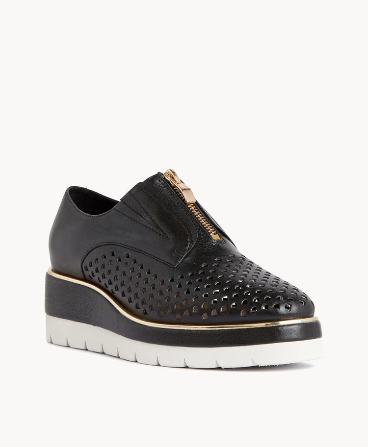 Set on a contrast platform sole, our Tylo wedge flat has perforated leather, and metal trim details that are perfect for matching with your favourite jewellery.