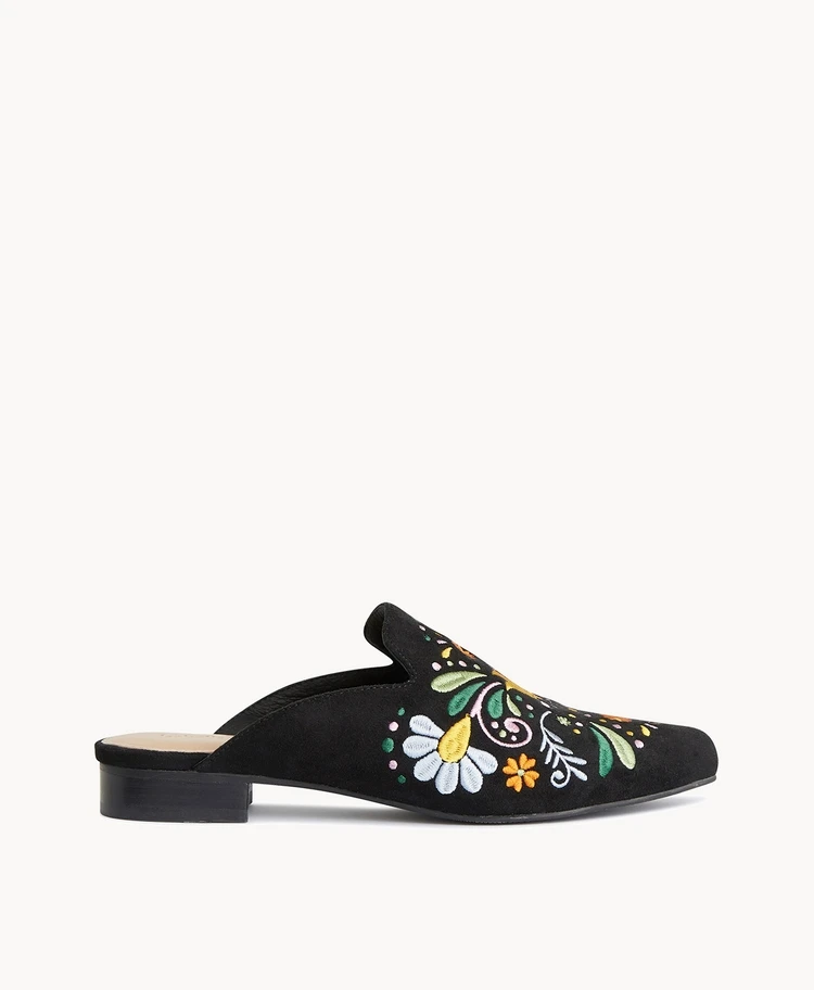 Featuring our in-house designed embroidery, the Wiggy mule features an almond shaped toe and sophisticated lines, keeping this style fun and feminine.