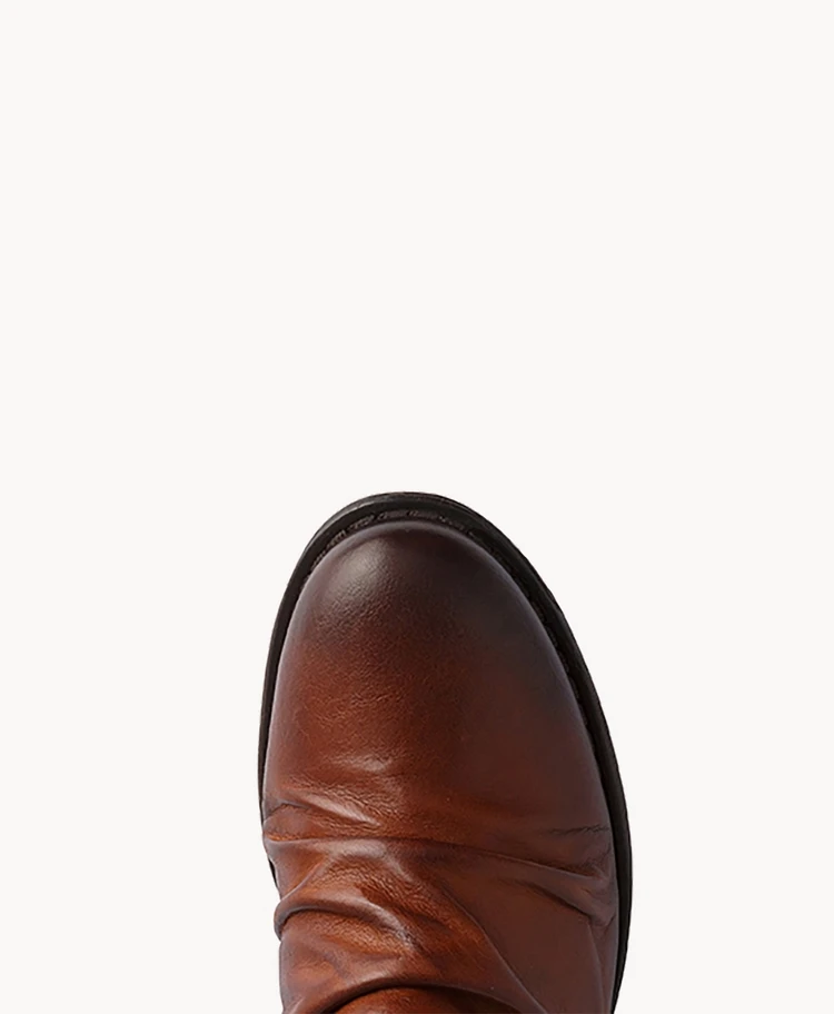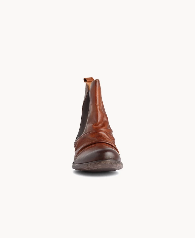 One of our most beloved (and bestselling) ankle boots, these are crafted in Portugal and feature rouched leather, an elastic gusset and a comfortable low heel.